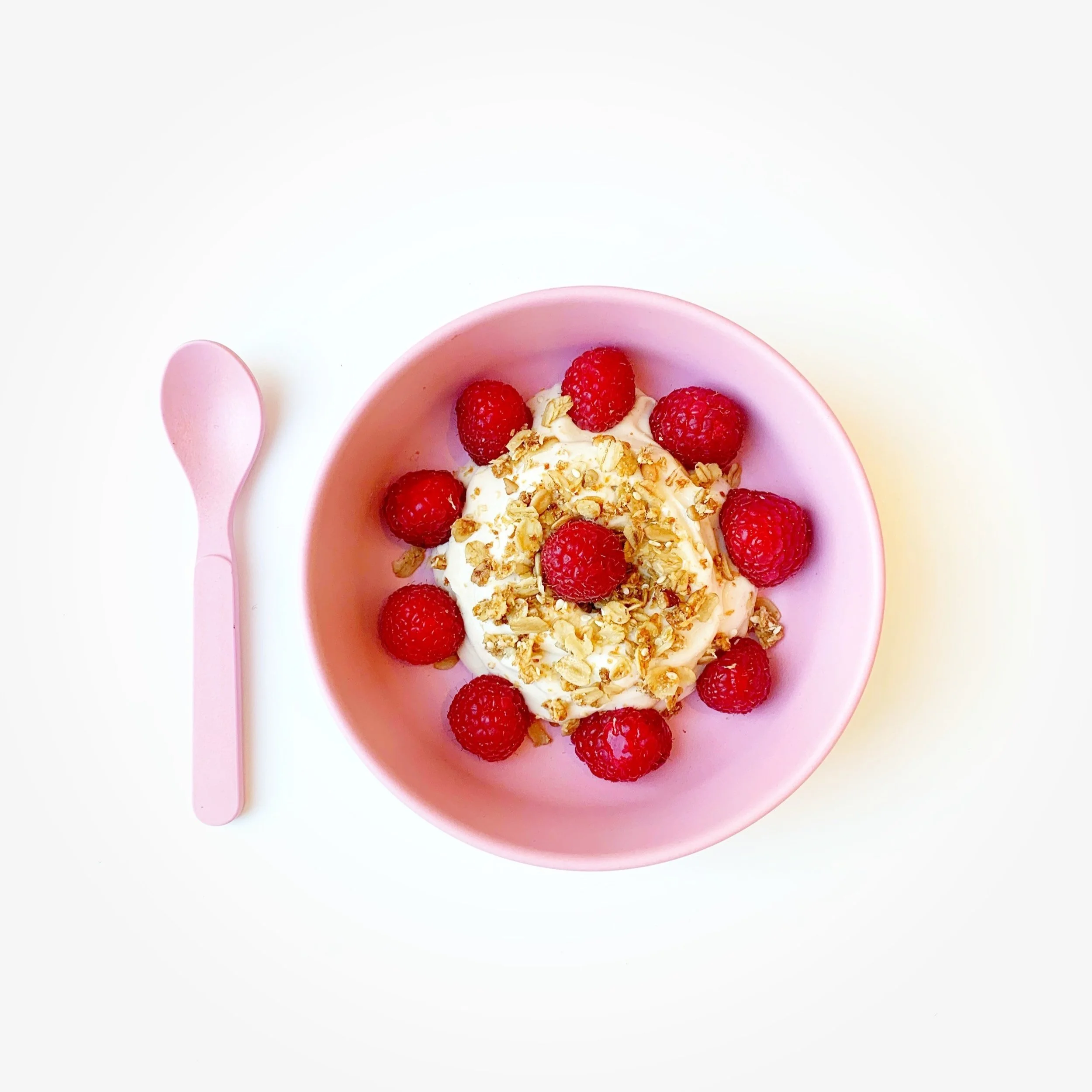 Offer plain Greek yogurt topped with fruits, granola, or a drizzle of honey (if over 12 months old)